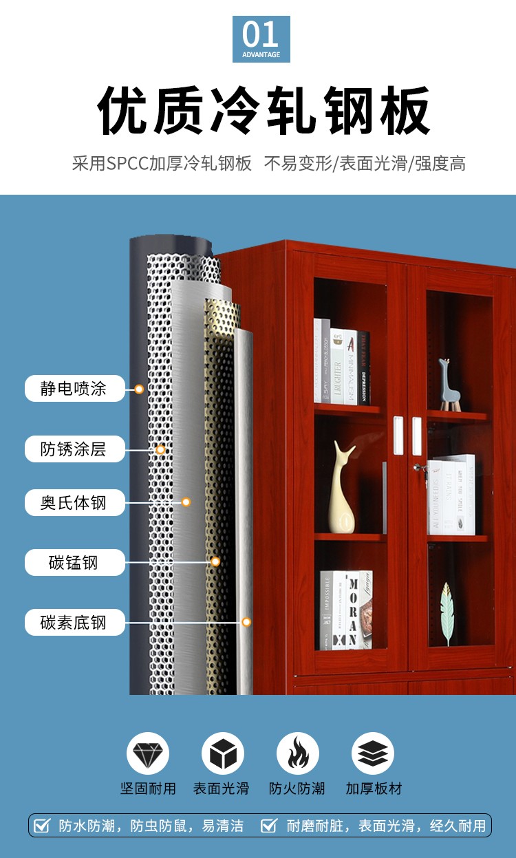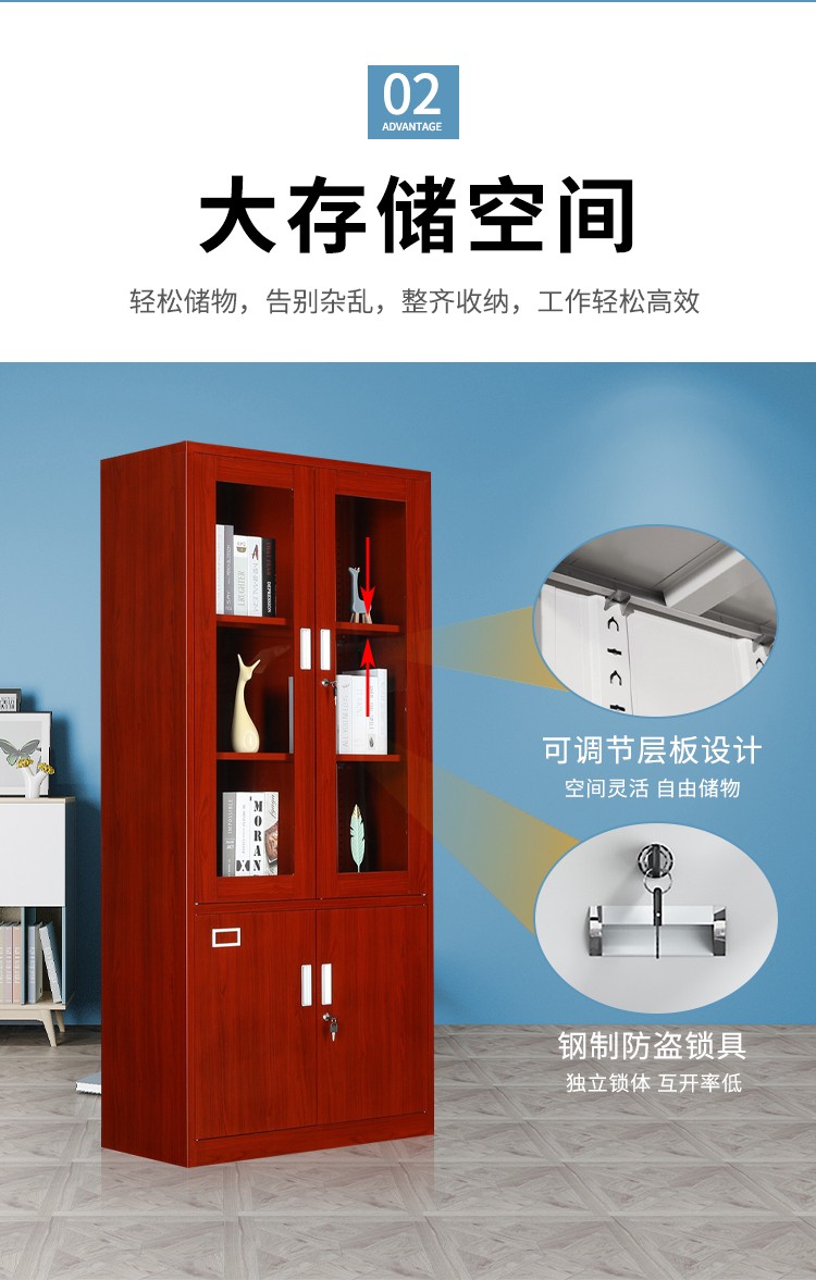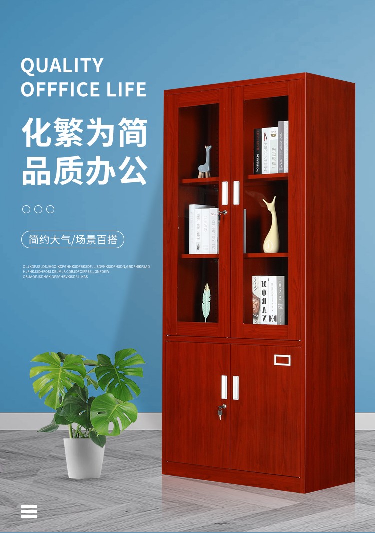 红木纹大器薄边套色文件柜