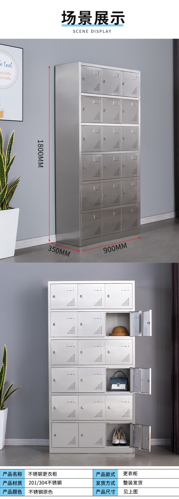 不锈钢更 衣柜18门